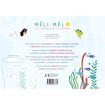 Ce livre est à la fois un documentaire, un cahier d'activités et un livre-jeu. Tu découvriras d'abord chaque animal et ses petits dans leur habitat.Tu pourras également compléter les moitiés d'animaux et de décors incomplets en dessins, coloriages et gommettes.Enfin, tu pourras jouer à composer plein d'animaux rigolos en associant les moitiés les unes aux autres pour voir à quoi ressemblent, par exemple, un « hérival » ou un « cobeille »…Un livre unique pour découvrir les animaux et jouer avec tes propres créations !